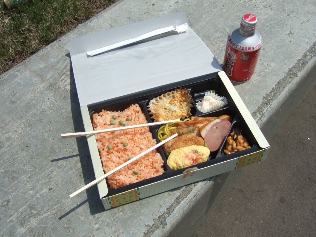 FUN -- Western food in Hakodate: rice, cold soba noodles, tempura, korean bean salad :-)